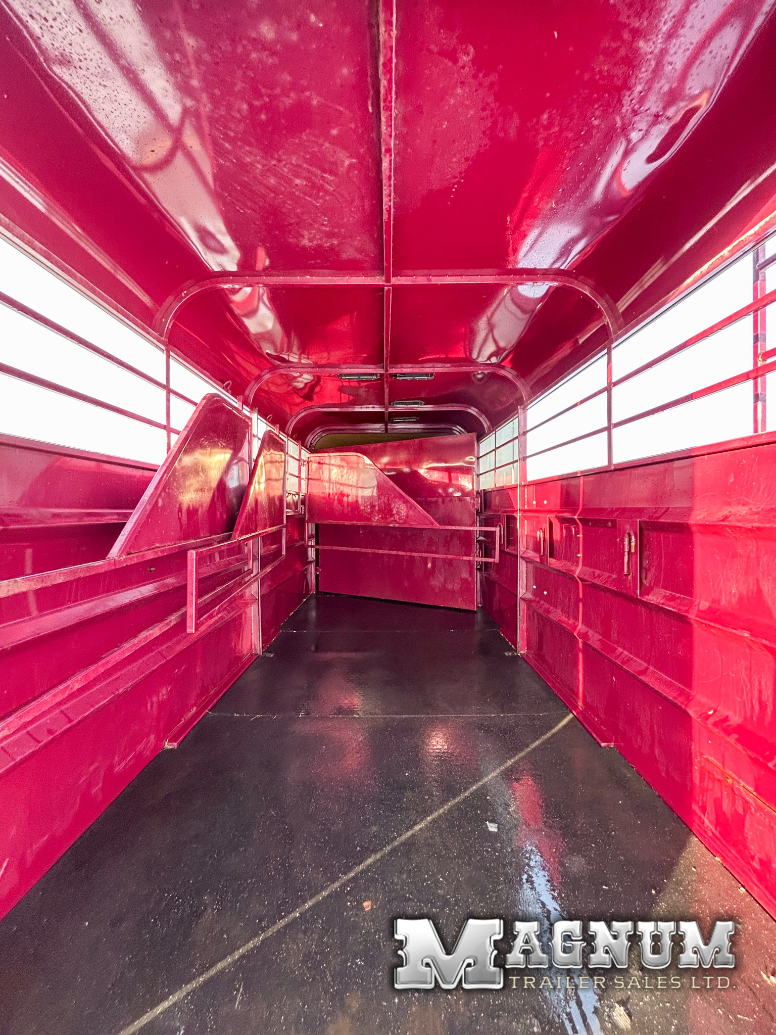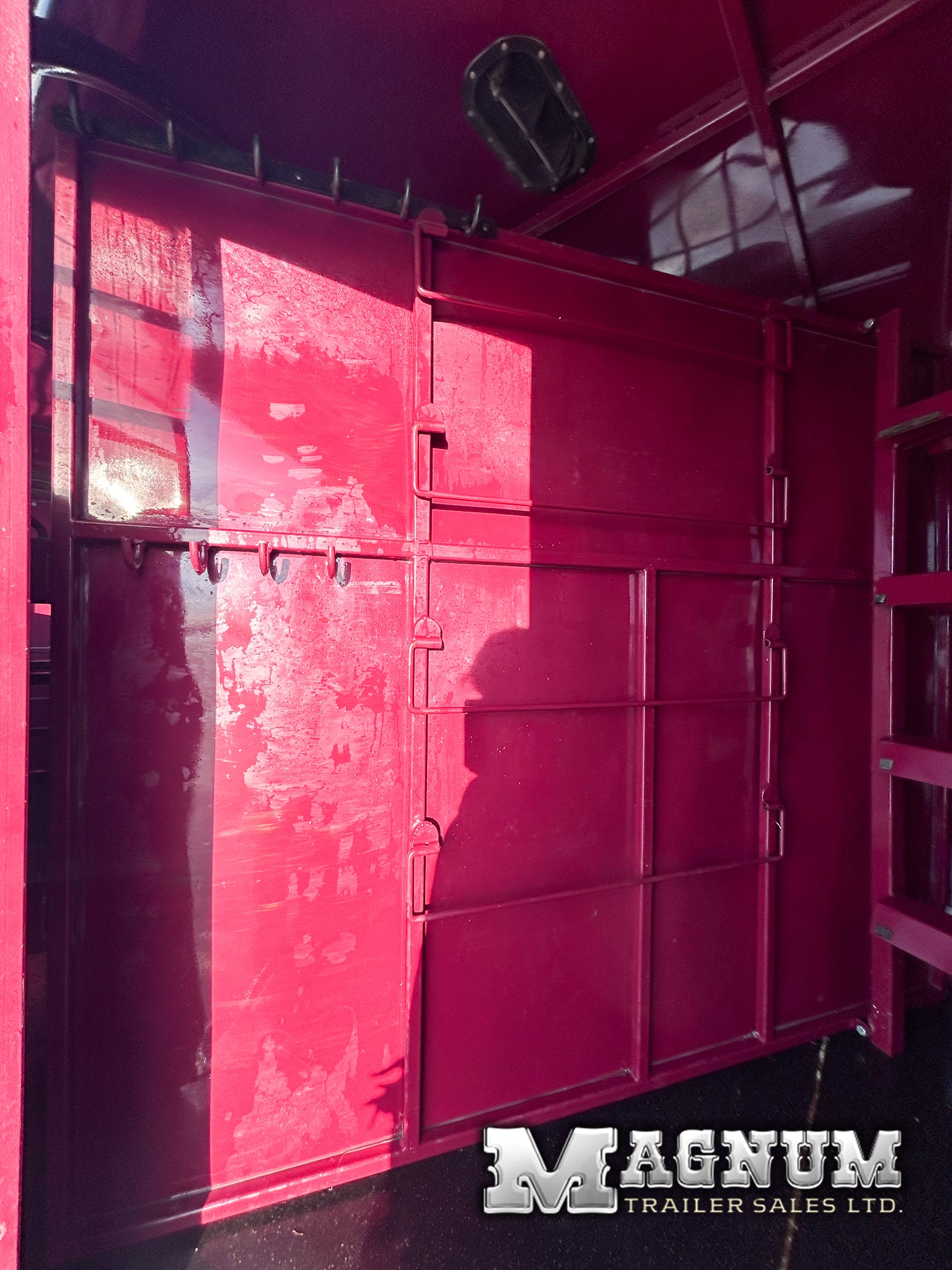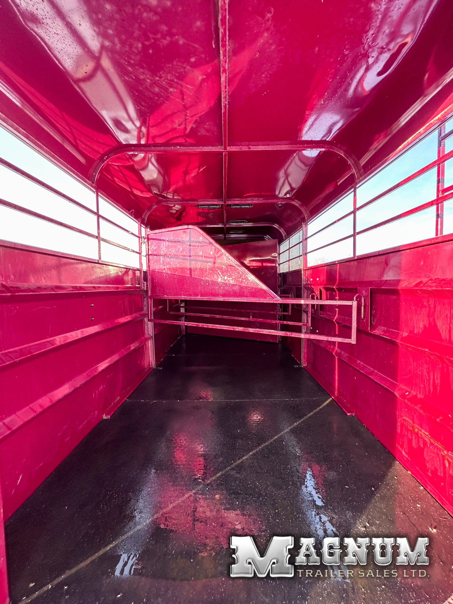 A very versatile trailer - Take out dividers and haul livestock or fold back the angle wall and haul a side by side!!