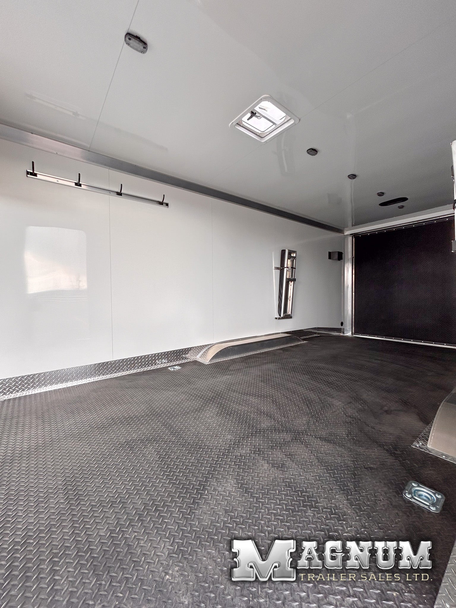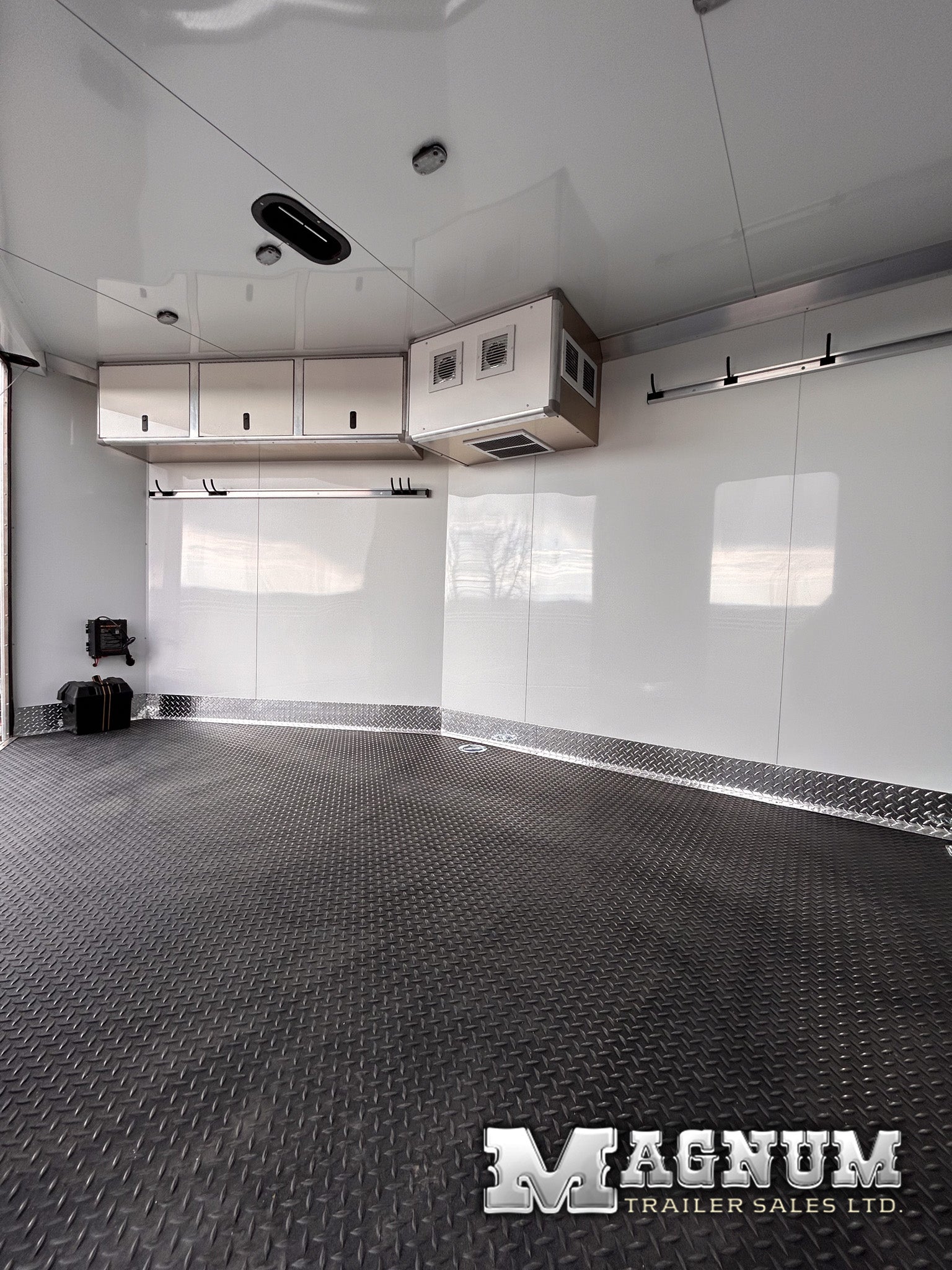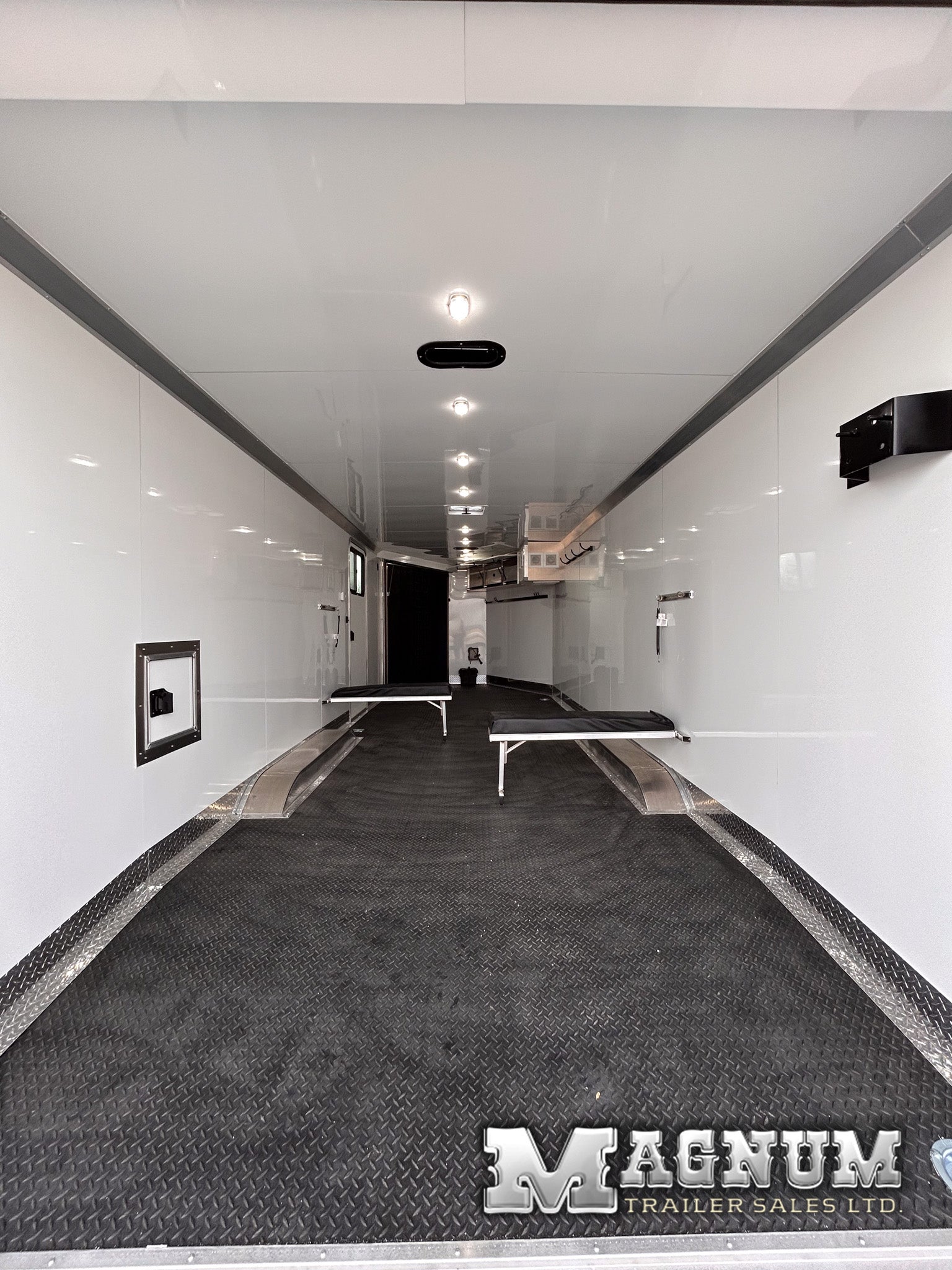 - White aluminum sheeted walls + ceiling