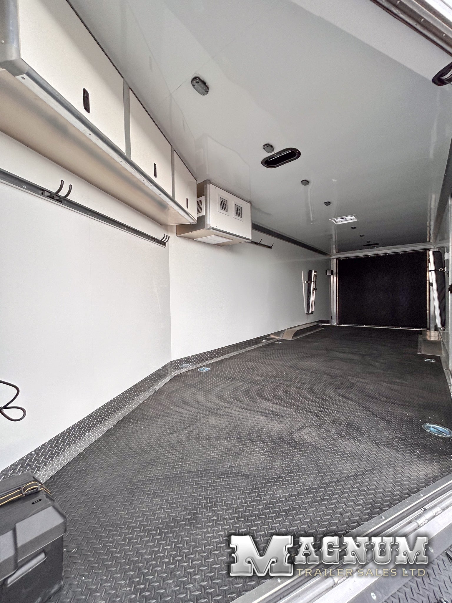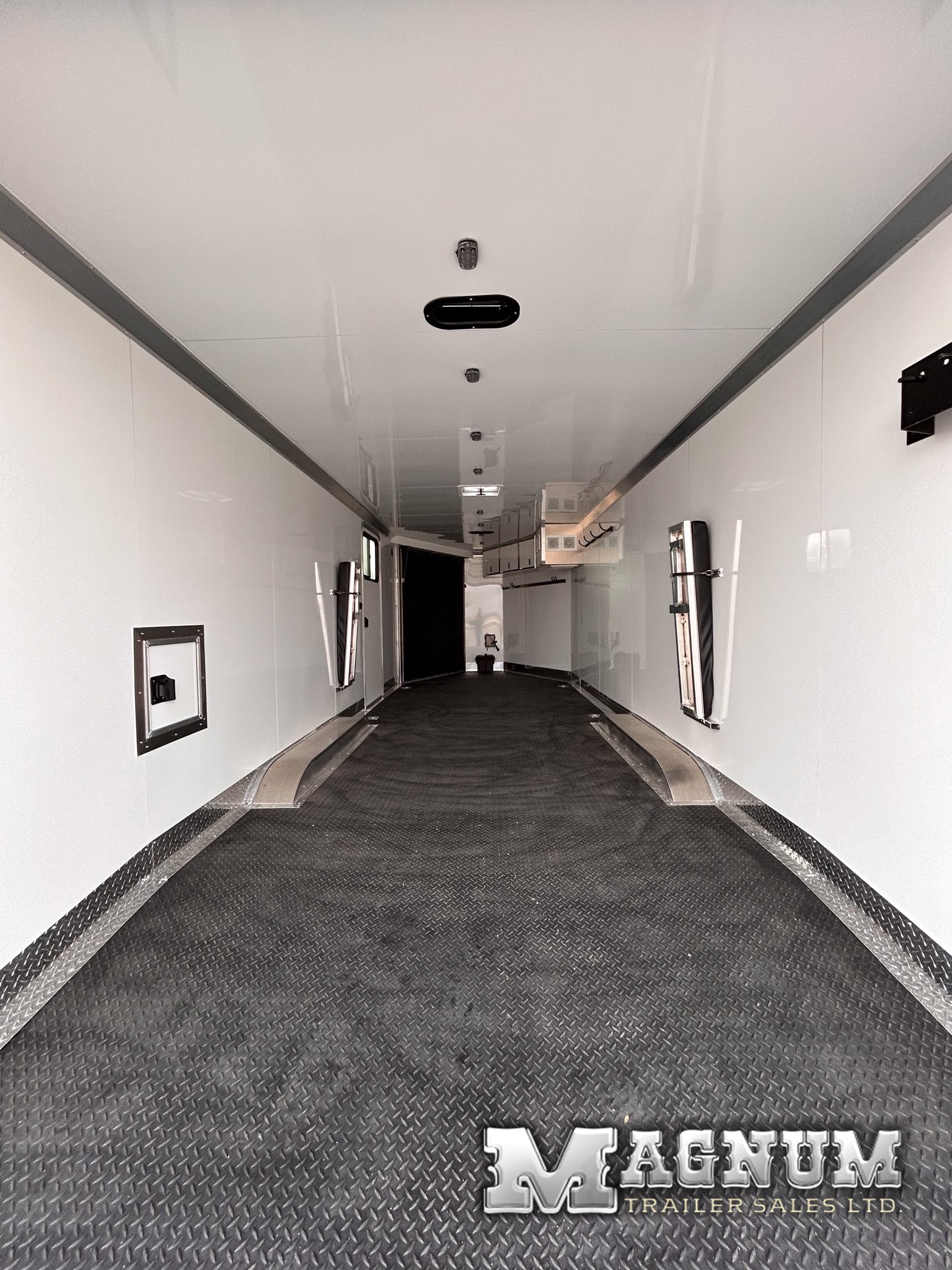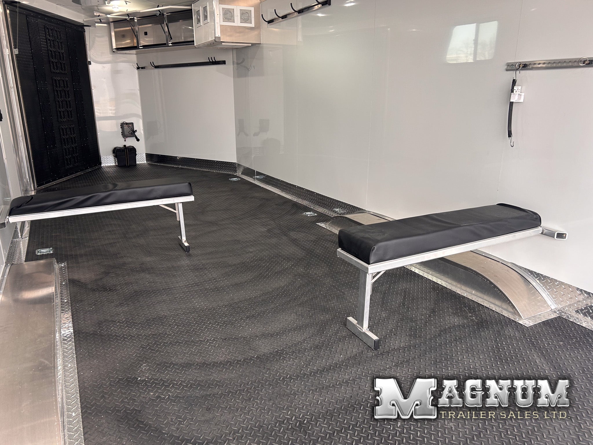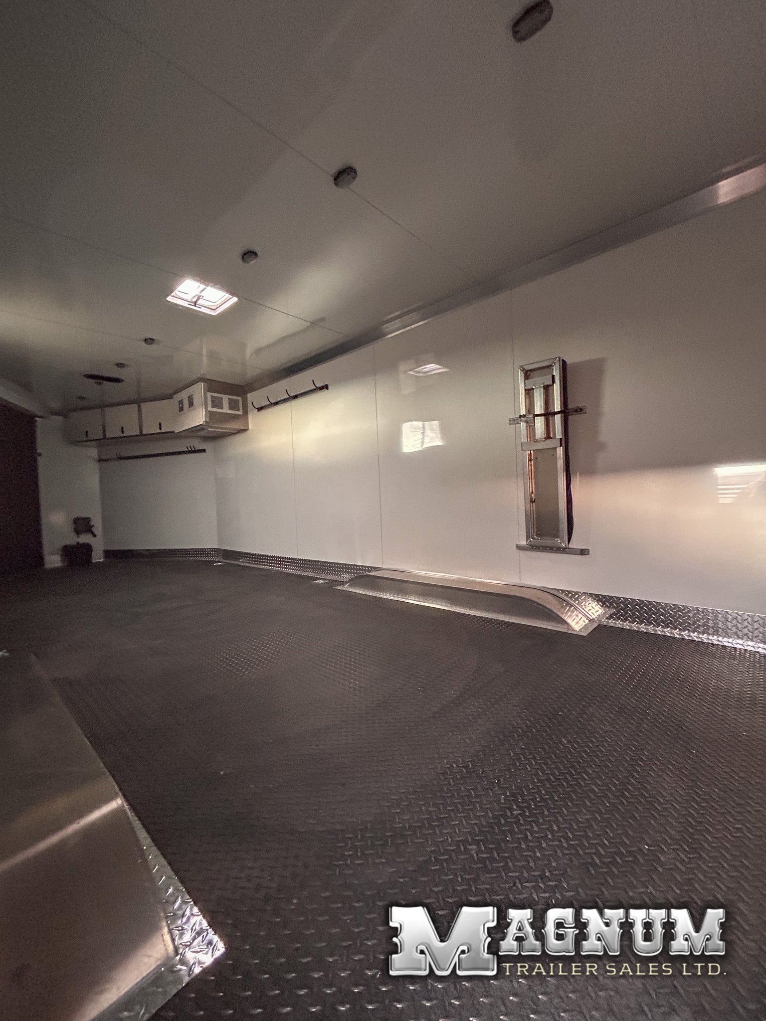 - White aluminum sheeted walls + ceiling