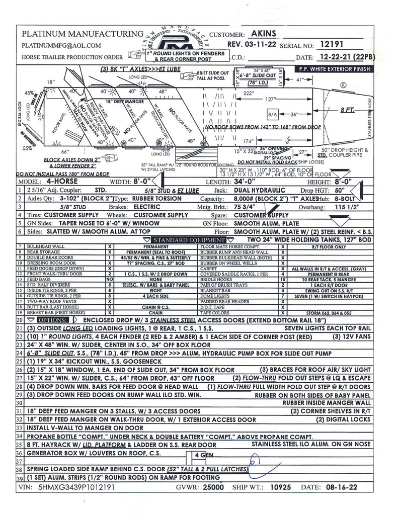 - Full rear tack w/ 18" Short wall, 5’6” long wall