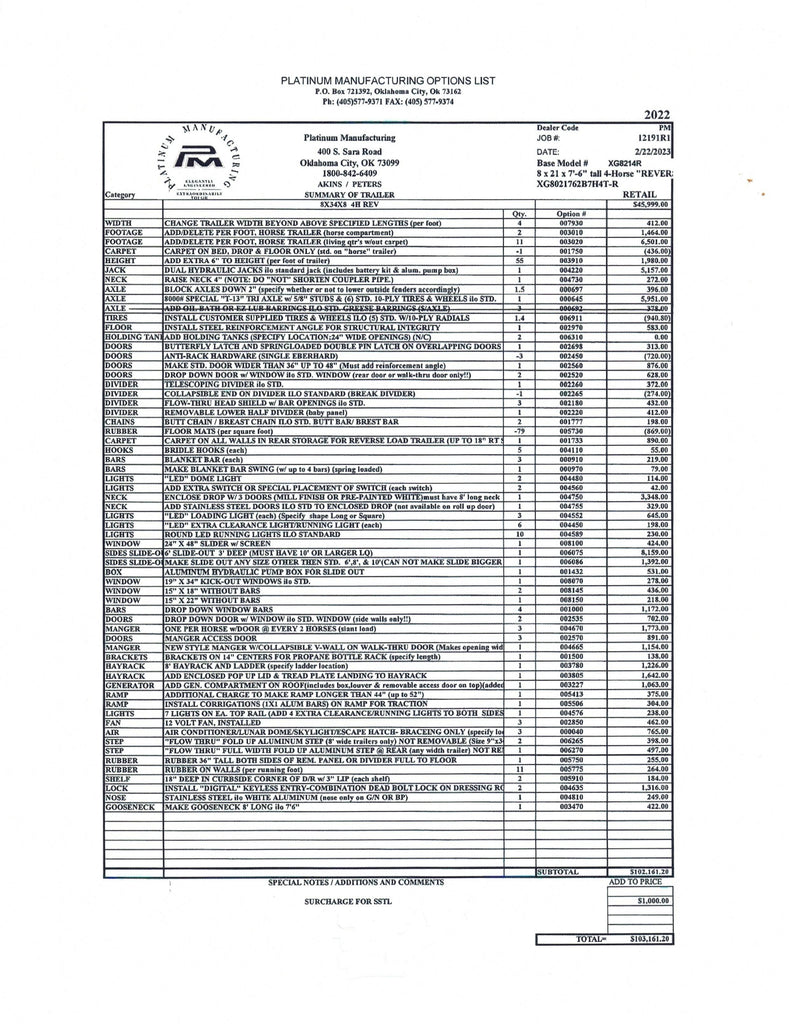 2023 Platinum Coach 4 Horse ”Reverse Haul" Living Quarters w/ Slide Out $159,995 USD *OFF-SITE*