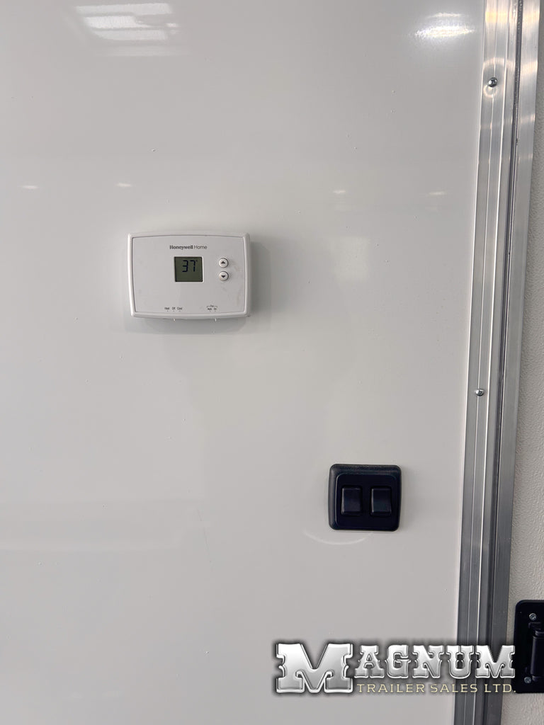 - White aluminum sheeted walls + ceiling